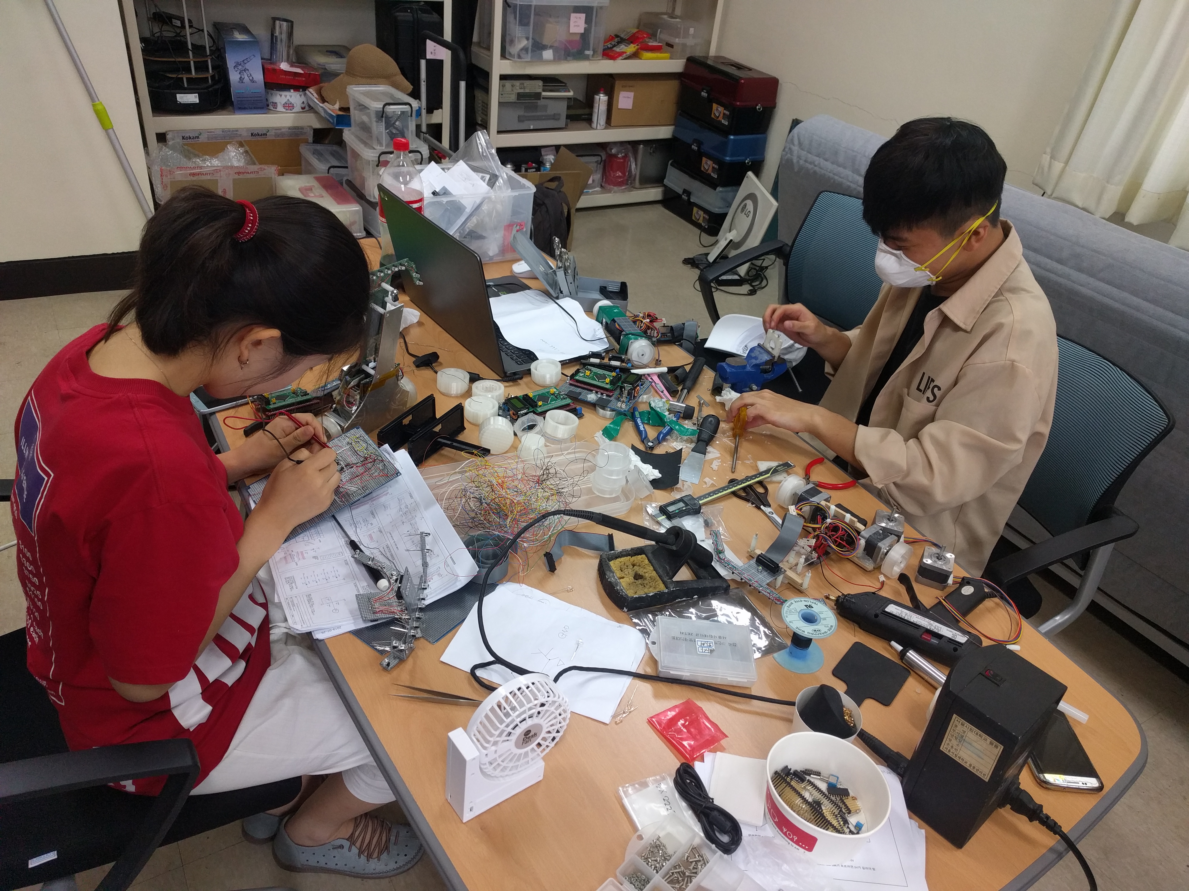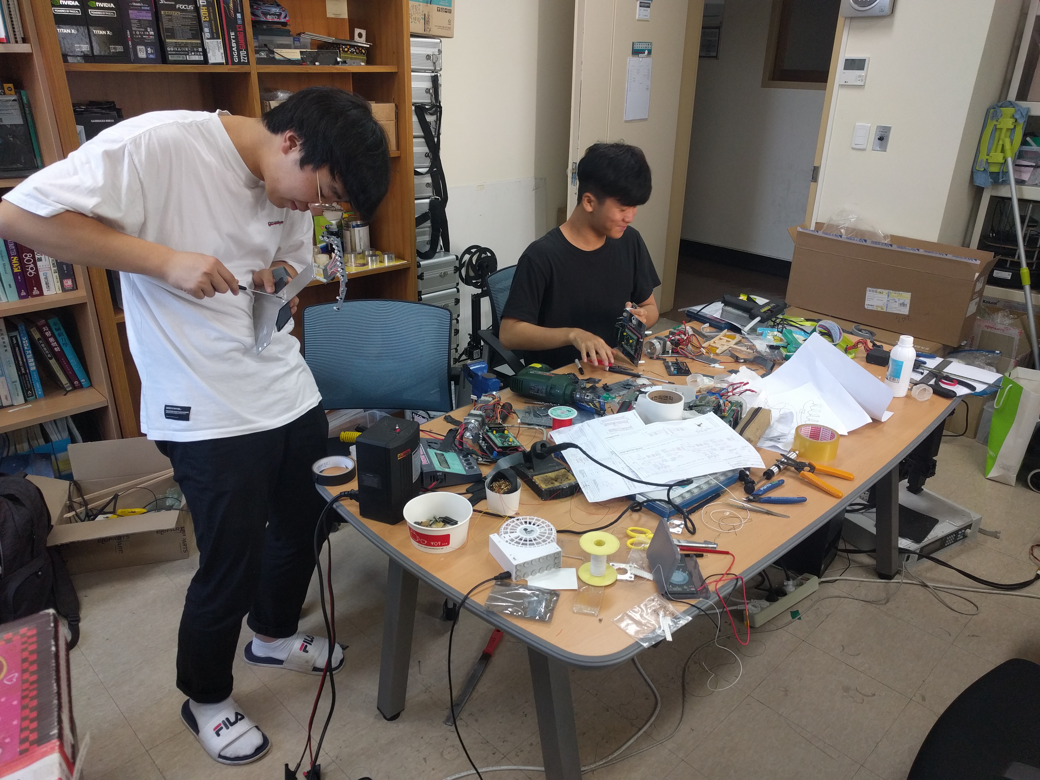 8월5일 로봇 깎는 노인(x), 캡스톤디자인 작품을 만들고 있는 고학년 선배입니다. 맨날 봐서 친해졌습니다.